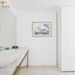 במורד  המדרגות המובילות למפלס הקרקע של הבניין הראשי,יש מסדרון המעוטר באלגנטיות עם הדגשות זהב ויצירות אמנות המושפעות מהים. ישנם שני חדרי שינה ממוזגים  שניהם כוללים מיטת קינג סייז (1,80 X 2,00 ס"מ) עם גישה ישירה לגן עם נוף לים של חוף לוטראקי. שני חדרי השינה כוללים חדרי רחצה צמודים עם מקלחות הידרומסאז', ארונות וטלוויזיות בגודל 32 אינץ'. לבסוף יש חדר כביסה במפלס הזה.