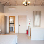 קומת קרקע: חלל אזור מגורים פתוח עם פינת אוכל, מטבח מאובזר ויציאה לבריכה. חדר שינה זוגי ואפשרות לינה של אדם אחד על הספה בסלון.