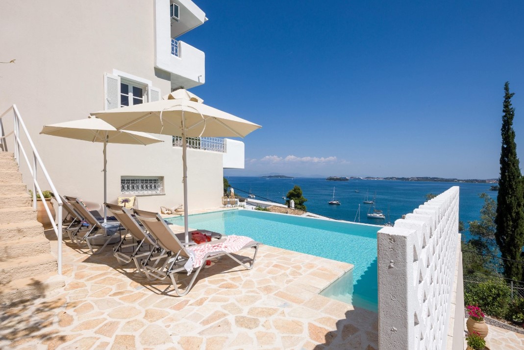 Villa Kimmino שוכנת מעל נתיב החוף הצר המתפתל סביב חצי האי הקטן, וילה זו משקיפה על הנופים הקסומים ביותר ובינהם, אחד המפרצים הציוריים ביותר של קורפו.