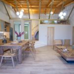 מיני סוויטה חדר שינה זוגי (מיטה זוגית) עם חדר רחצה צמוד, מקרר קטן, כיור ומכונת קפה + עליית גג (גלריה) לעוד 2 ילדים.