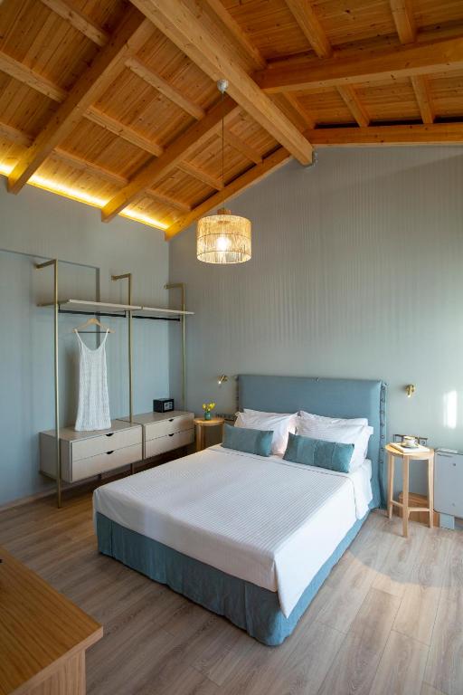 בכל חדרי השינה מיטות, מזרונים, שידות לילה, מצעים, מגבות, חלוקי רחצה ונעלי בית, הכל של חברת COCO-MAT.