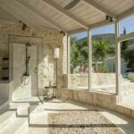 הווילה בשטח של 286 מ"ר, עם 4 חדרי שינה עם שני חדרי רחצה צמודים, חדר רחצה אחד משותף, שירותים אחד באזור הסלון ומקלחת אחת בתוך החמאם, ממוקמת בלב הטבע, ב-Poros, Lefkada