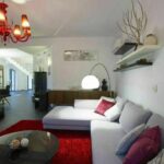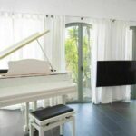 בחלק האחורי של אזור המגורים הפתוח נמצא הסלון, יש פסנתר כנף ושירותים באזור הסלון.