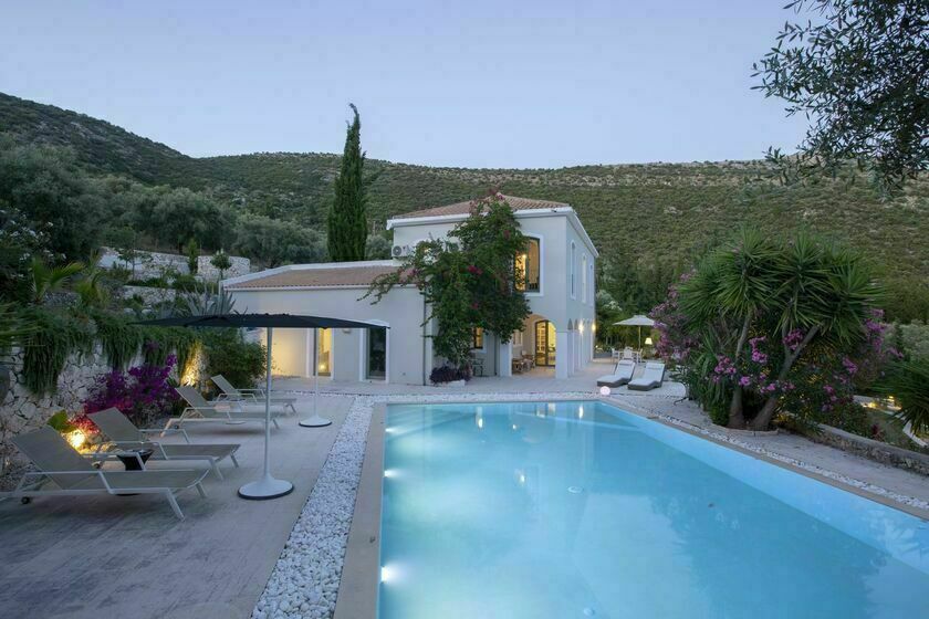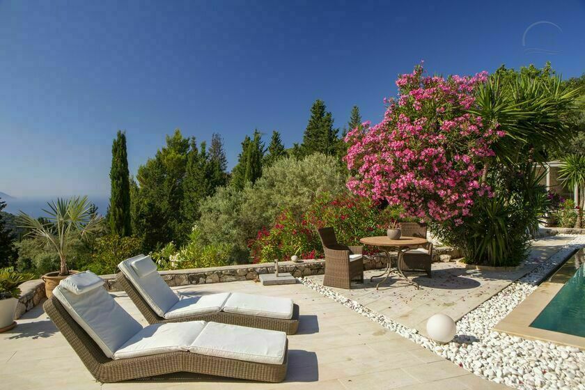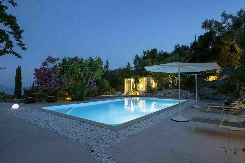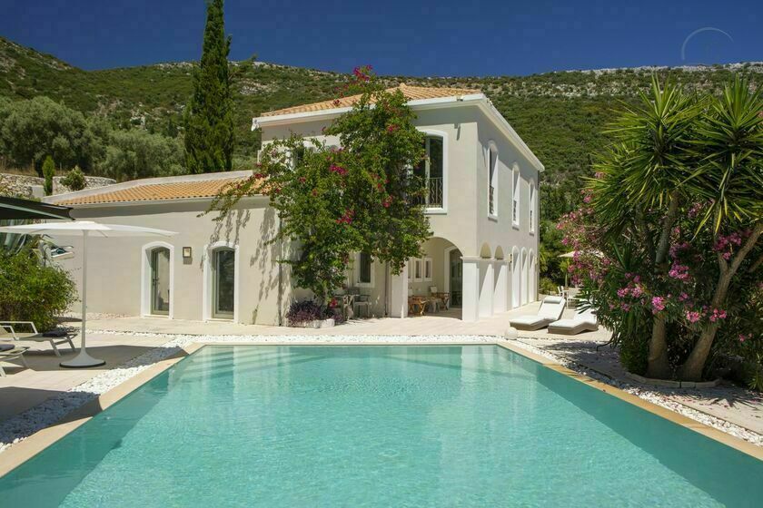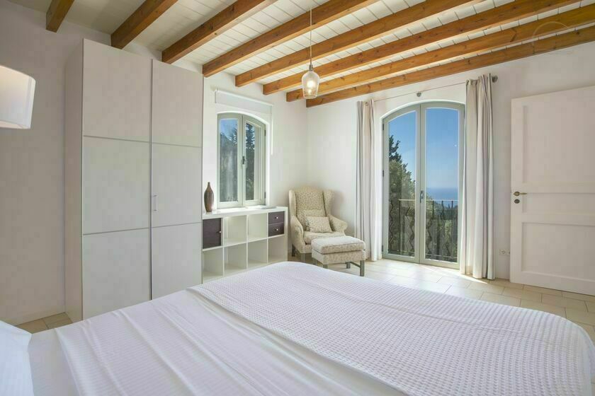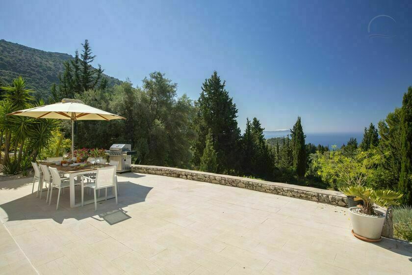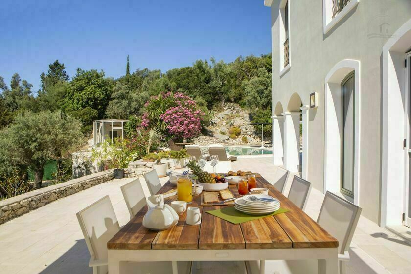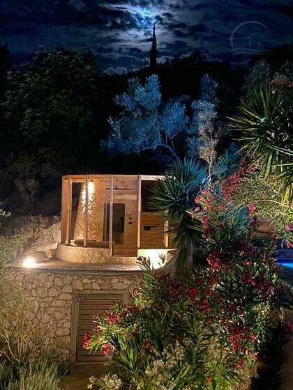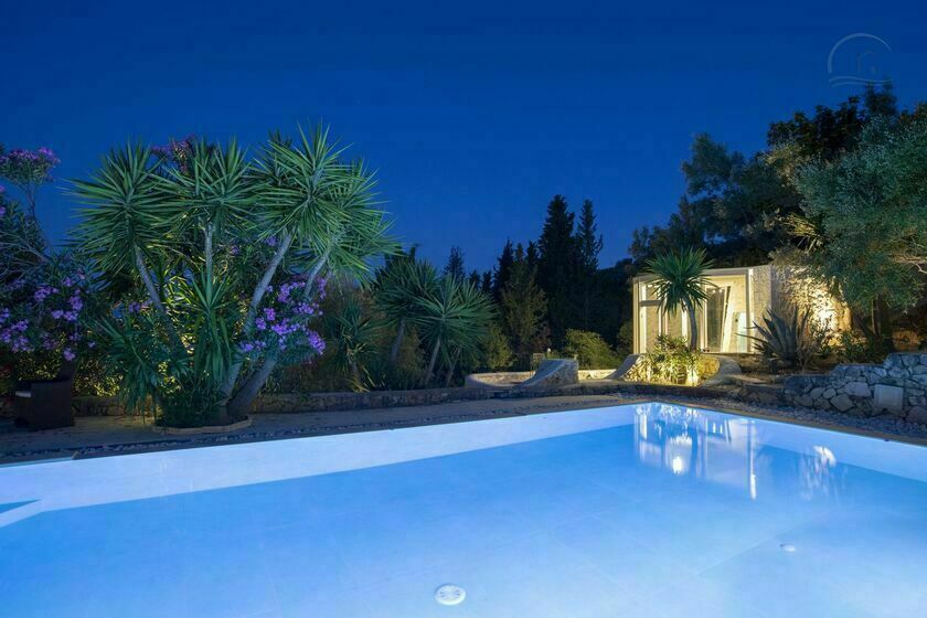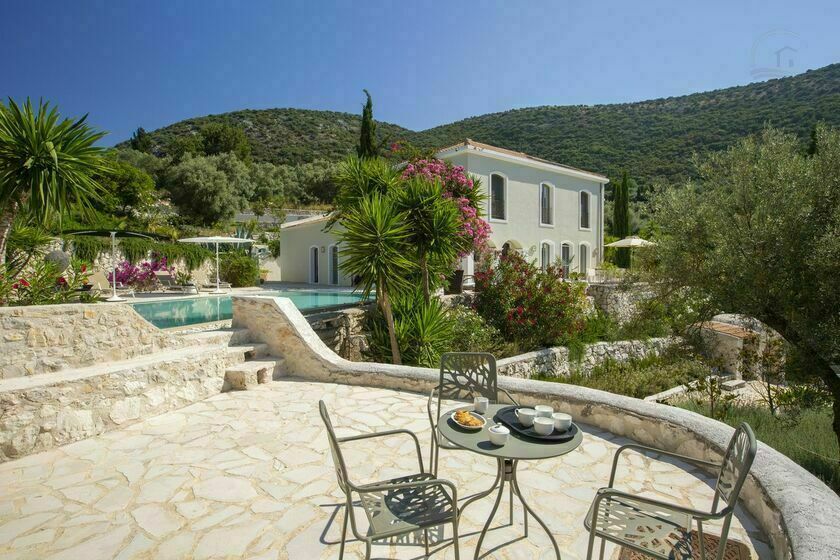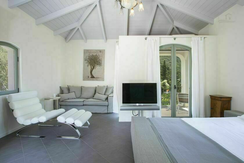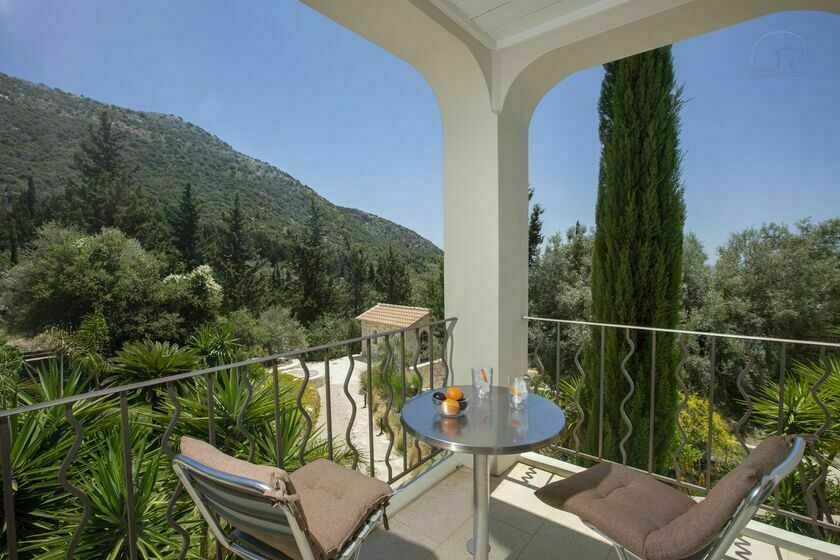 הווילה בשטח של 286 מ"ר, עם 4 חדרי שינה עם שני חדרי רחצה צמודים, חדר רחצה אחד משותף, שירותים אחד באזור הסלון ומקלחת אחת בתוך החמאם, ממוקמת בלב הטבע, ב-Poros, Lefkada