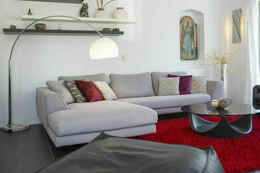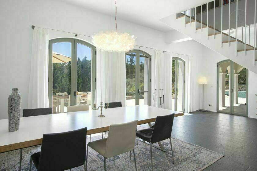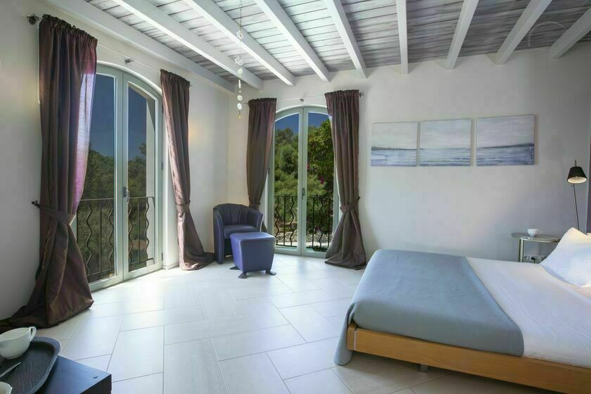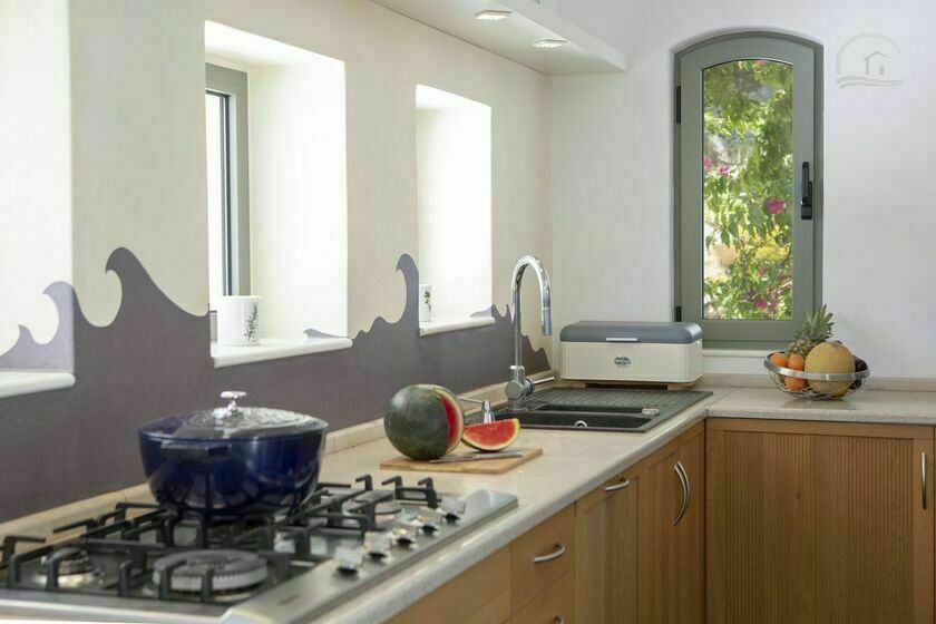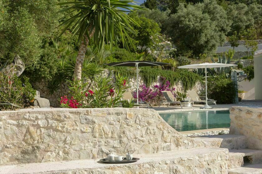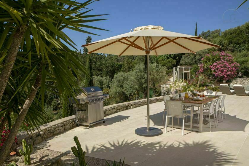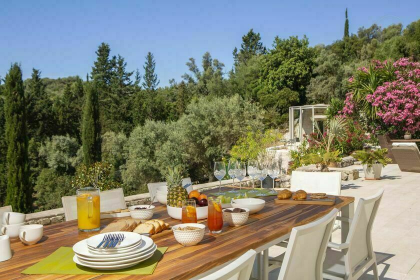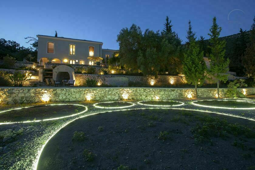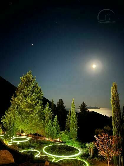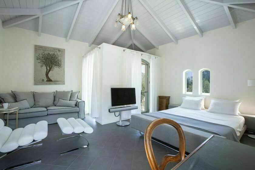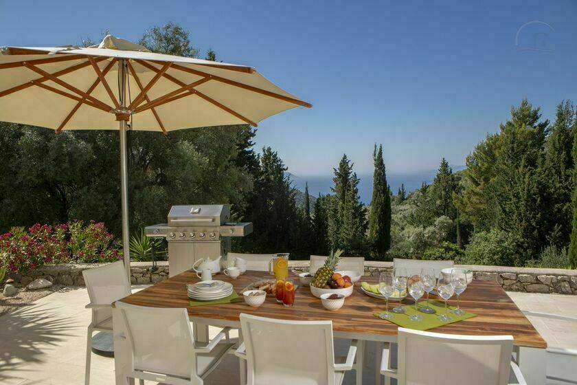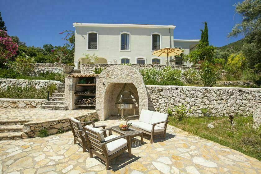 הווילה בשטח של 286 מ"ר, עם 4 חדרי שינה עם שני חדרי רחצה צמודים, חדר רחצה אחד משותף, שירותים אחד באזור הסלון ומקלחת אחת בתוך החמאם, ממוקמת בלב הטבע, ב-Poros, Lefkada