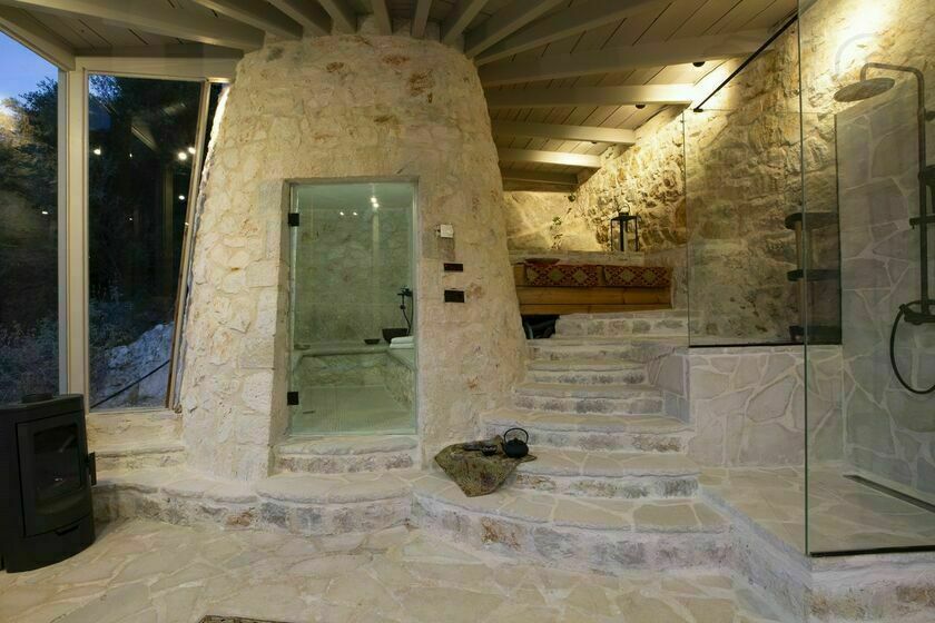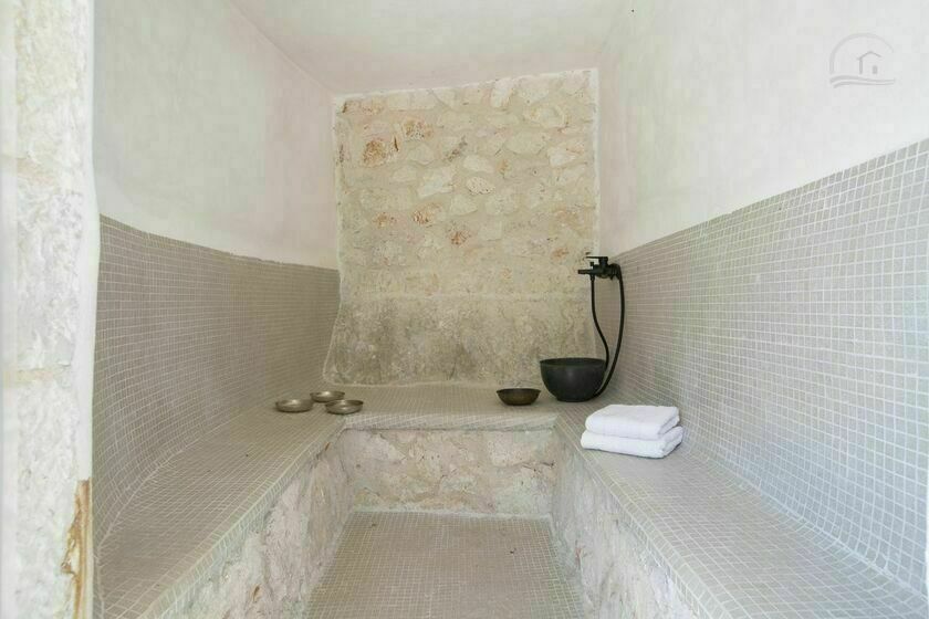 אזור ליד הבריכה עם חמאם מרגיע או מטיפול ג'קוזי מרענן. בתוך החמאם יש מקלחת רביעית!