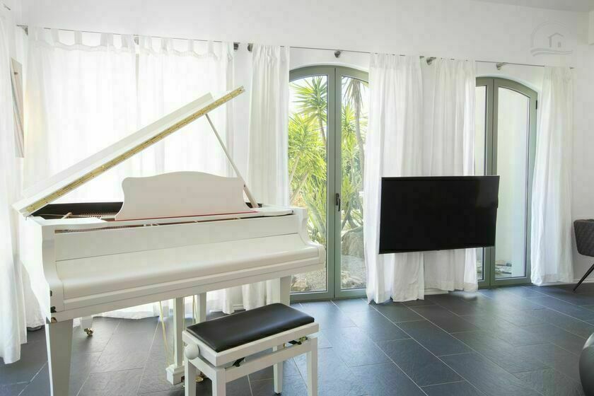 בחלק האחורי של אזור המגורים הפתוח נמצא הסלון, יש פסנתר כנף ושירותים באזור הסלון.