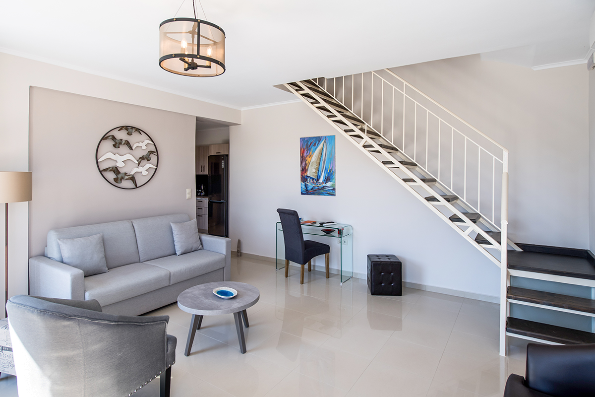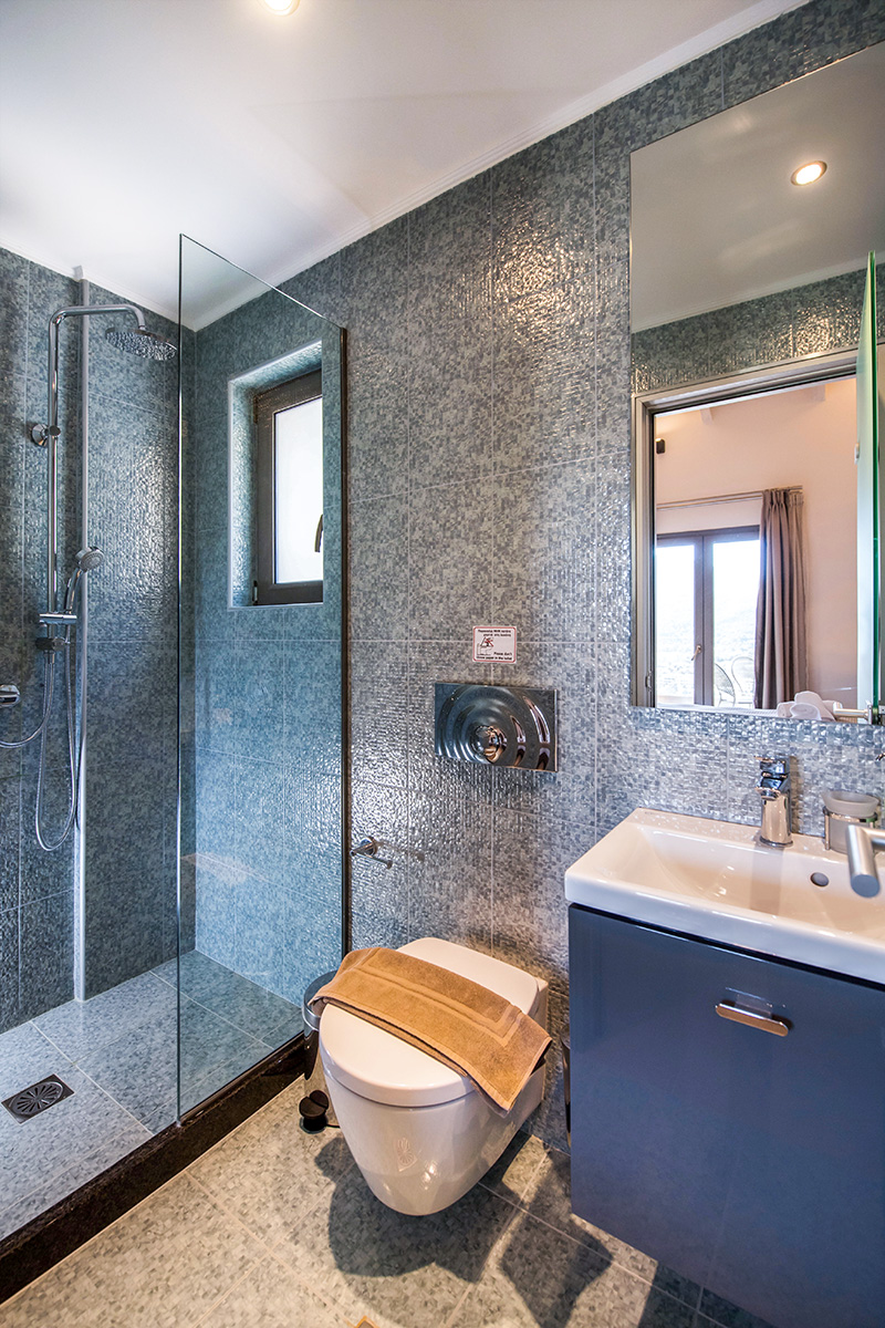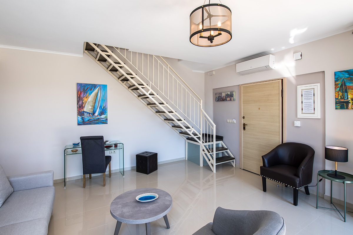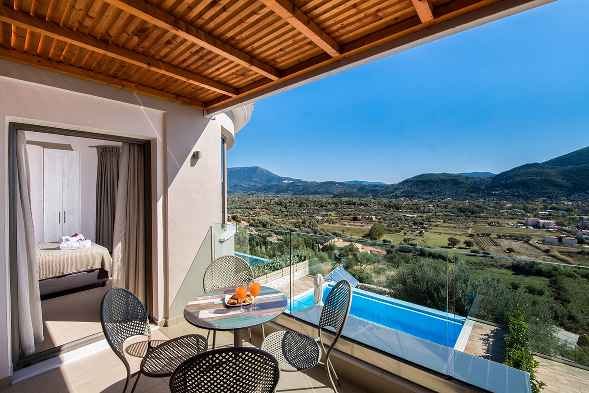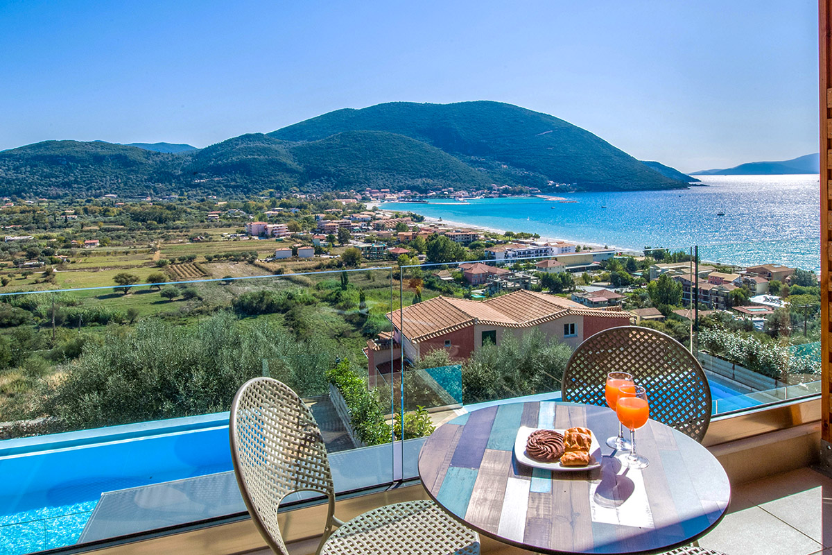 - שני חדרי שינה זוגיים עם חדר רחצה צמוד עם מקלחת. מאחד מחדרי השינה יש גישה ישירה למרפסת עם פינת ישיבה חיצונית עם נוף עוצר נשימה של הים היוני ומפרץ וסיליקי המשתרעת אל האי קפלוניה Kefalonia ואיתקה Ithaca .