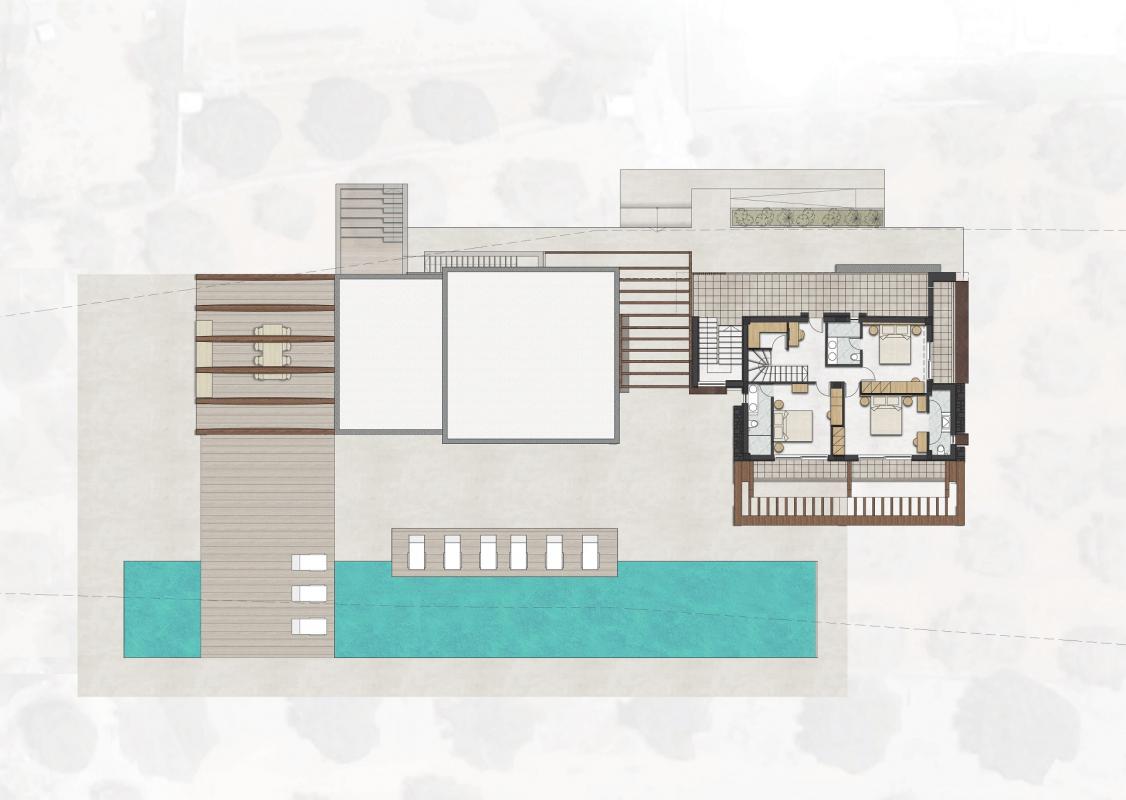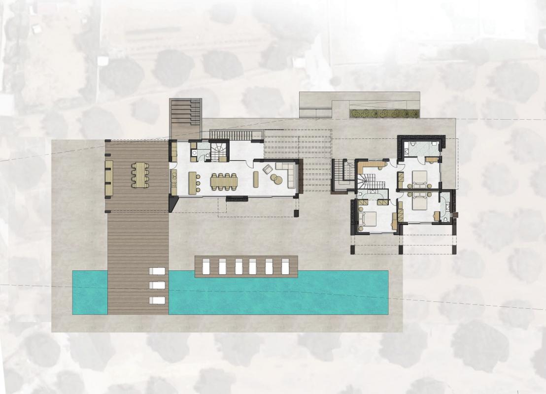 הויל מורכבת משני בניינים המחברים במפלס הקרקע. שמונה (8) חדרי השינה של חללי המגורים של הוילה יכולים להכיל קבוצה של עד שישה עשר (16) בני משפחה או חברים.