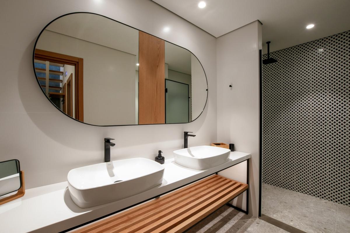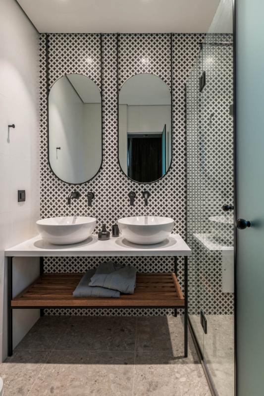 לכל חדר השינה יש חדר הרחצה הצמוד עם עיצוב מיוחד במינו.