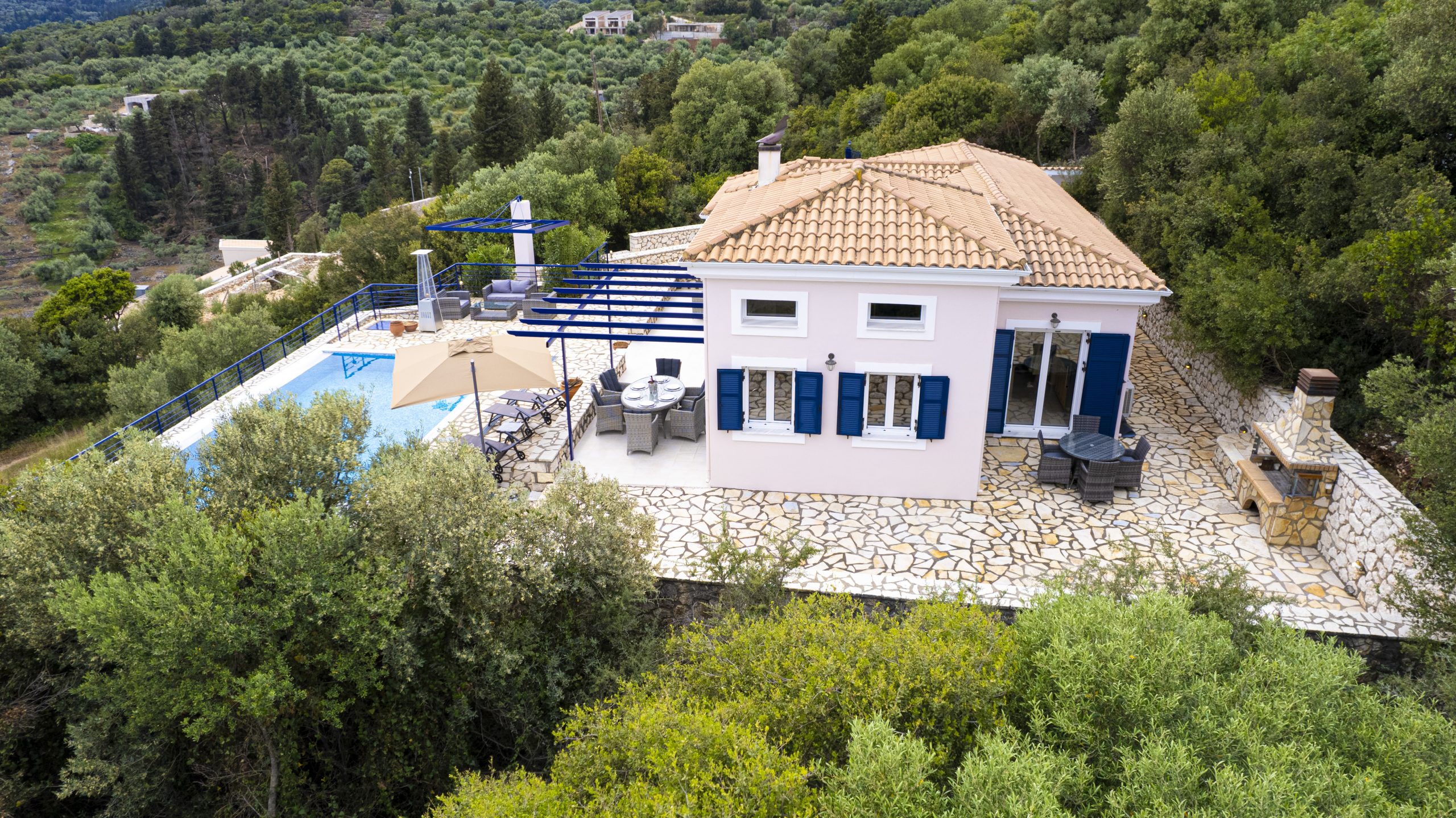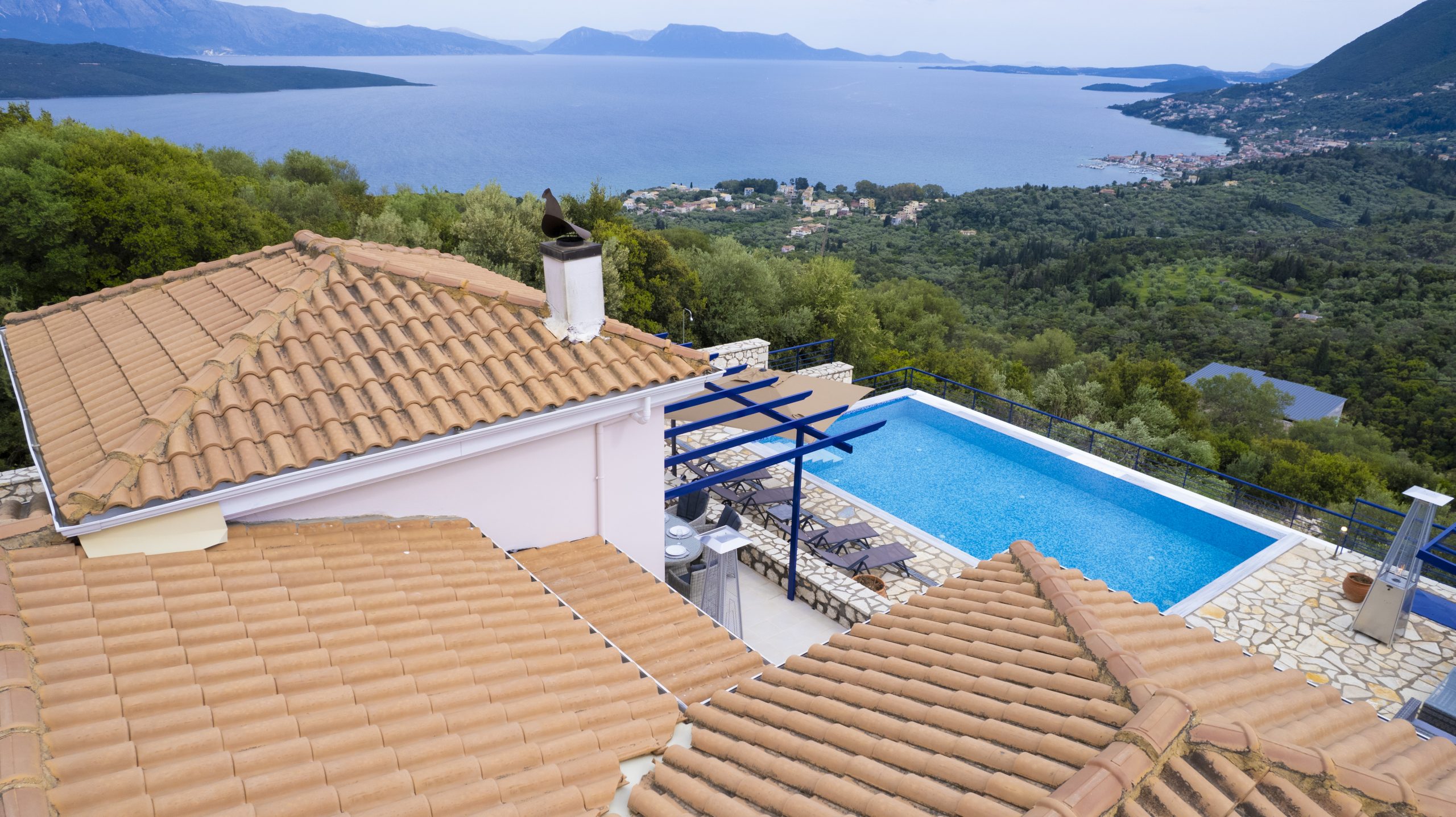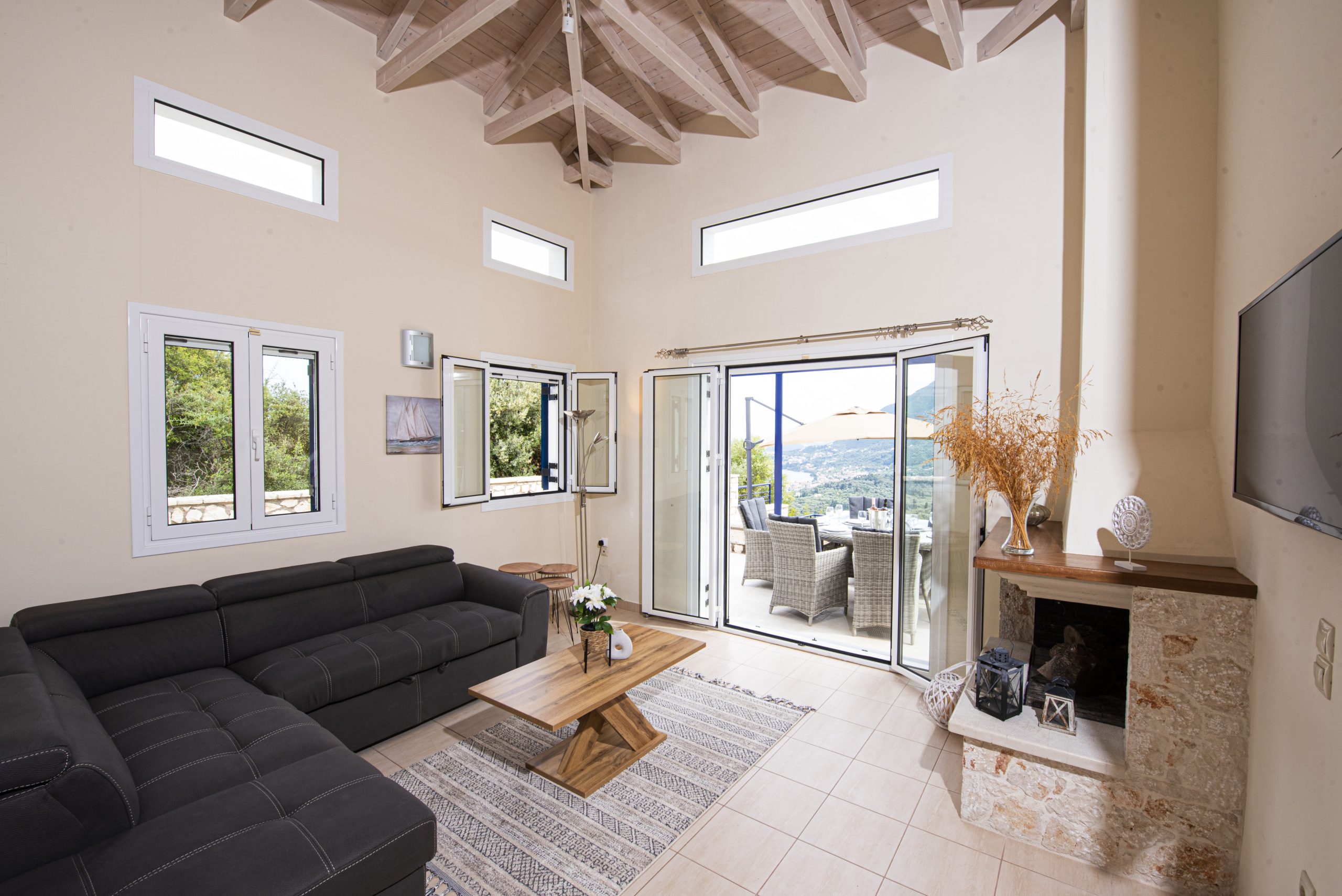 וילה יוונית מסורתית ששופצה לאחרונה משופץ לאחרונה עם פרטיות מלאה ונופים מדהימים של החוף המזרחי של לפקאדה.