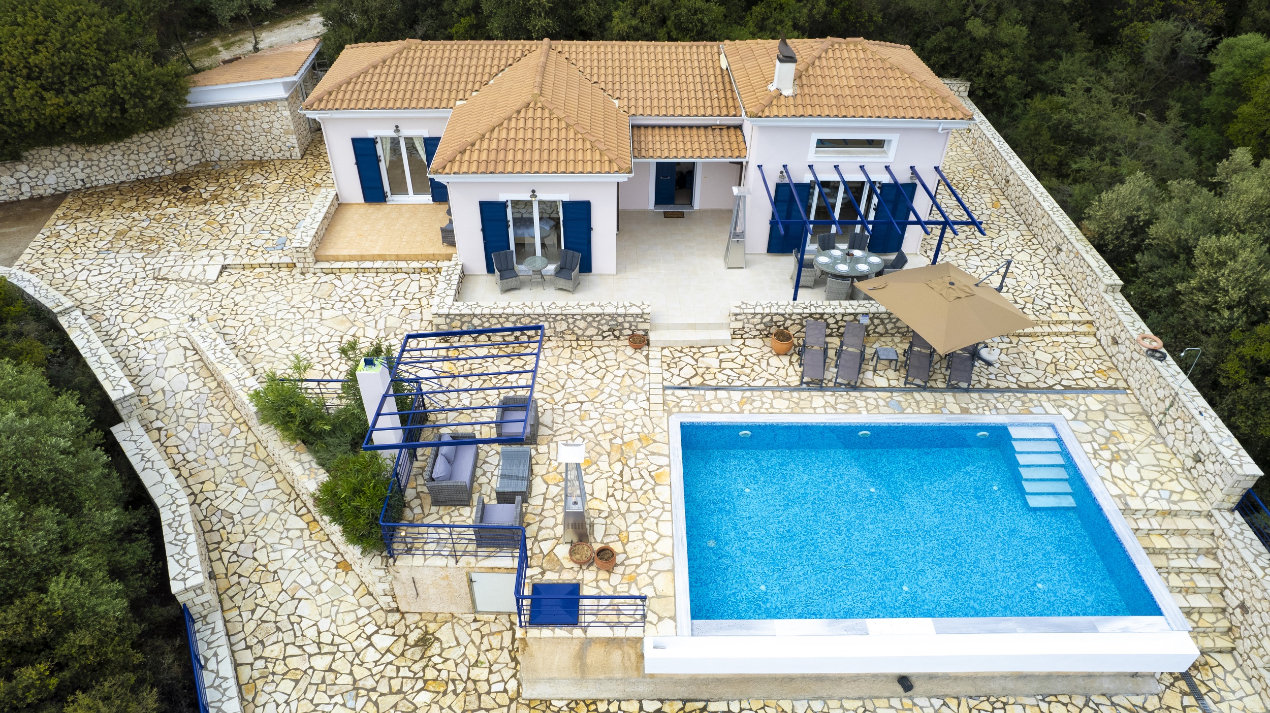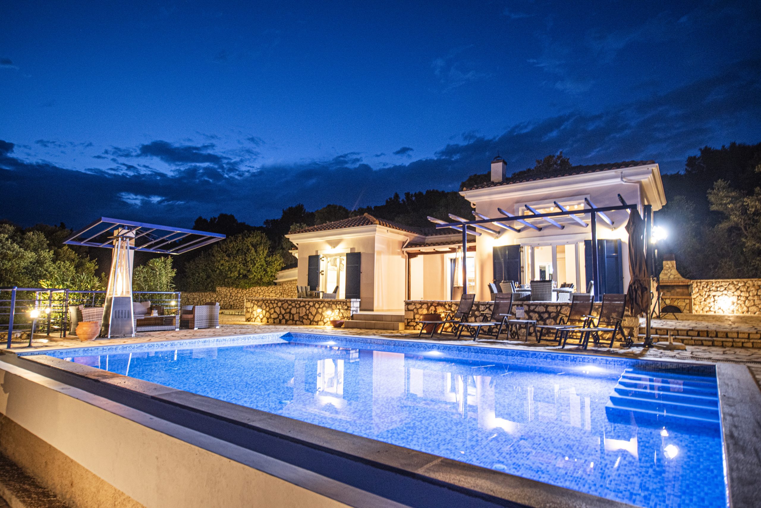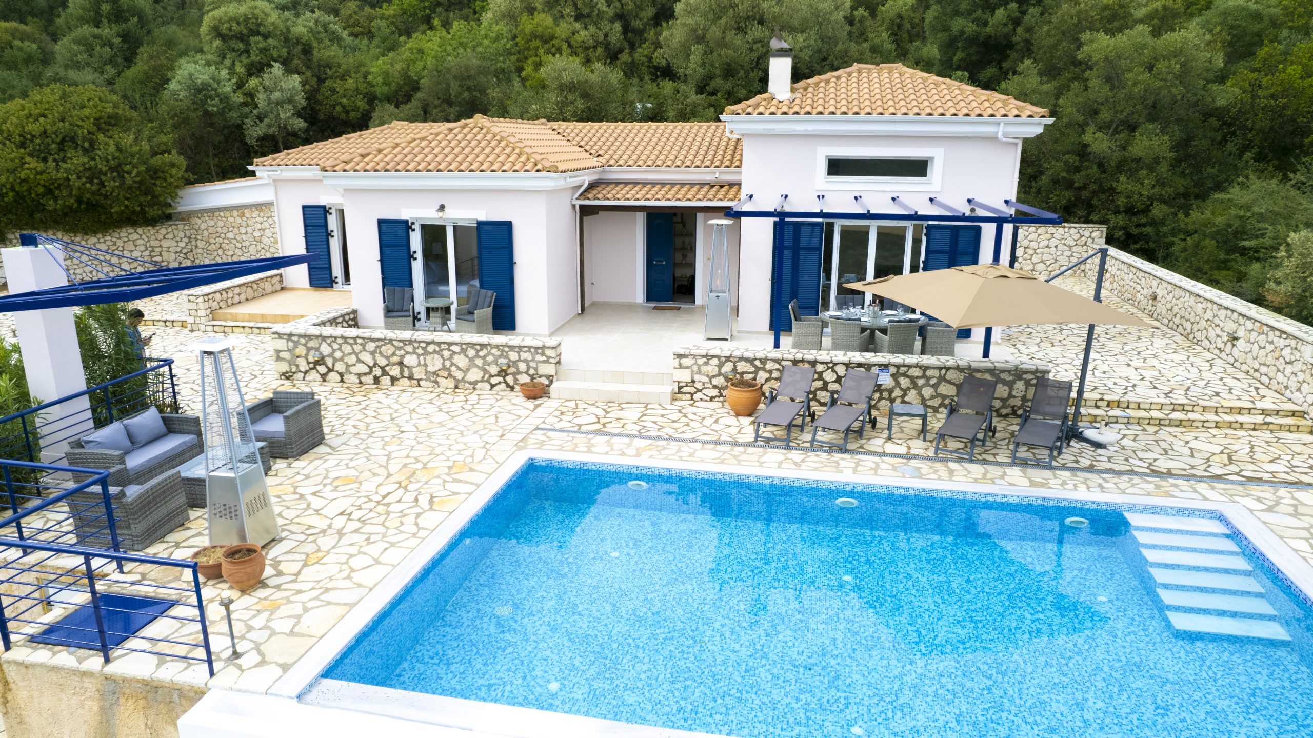 וילה יוונית מסורתית ששופצה לאחרונה משופץ לאחרונה עם פרטיות מלאה ונופים מדהימים של החוף המזרחי של לפקאדה.