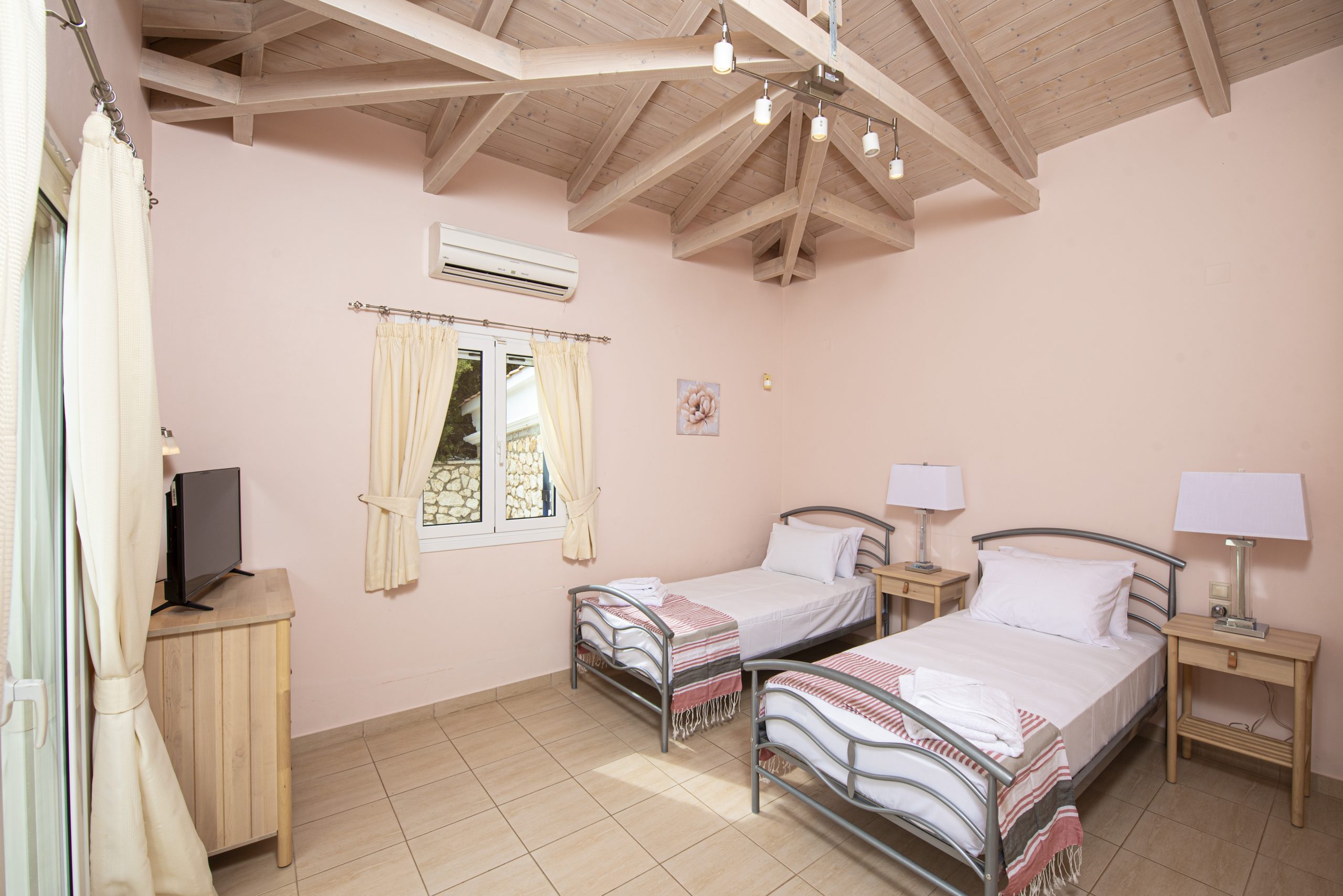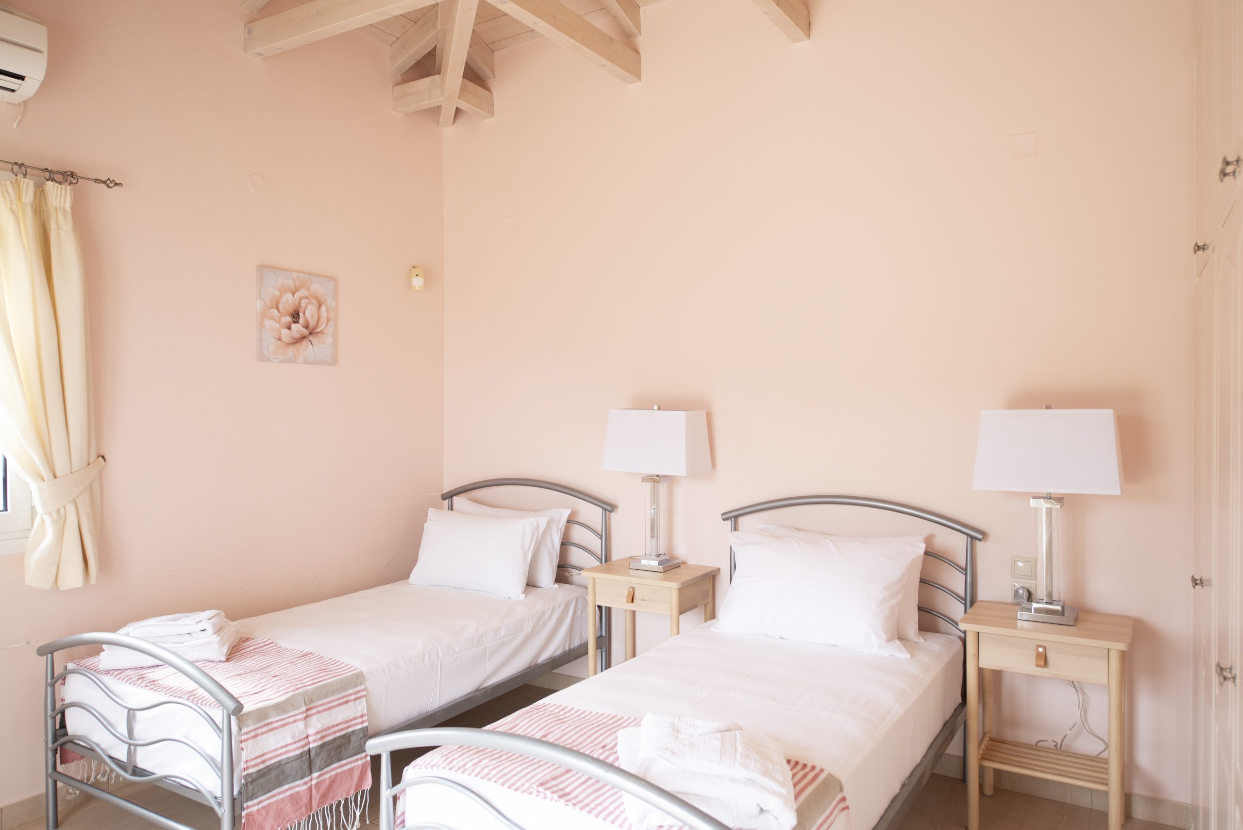 המסדרון מוביל לשני חדרי השינה. חדר השינה הראשון מצויד במיטה זוגית וחדר רחצה משפחתי עם מקלחת . חדר השינה השני בקצה המסדרון מצויד בשתי מיטות יחיד החדר השינה הטווין עם חדר רחצה צמוד עם מקלחת. לשני חללים אלה יש גם גישה ישירה לאזור הבריכה הפרטית החיצונית.