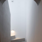 אזור מגורים מרווח בחלל פתוח מלא באור טבעי המוביל לחצר ולבריכת השחייה.