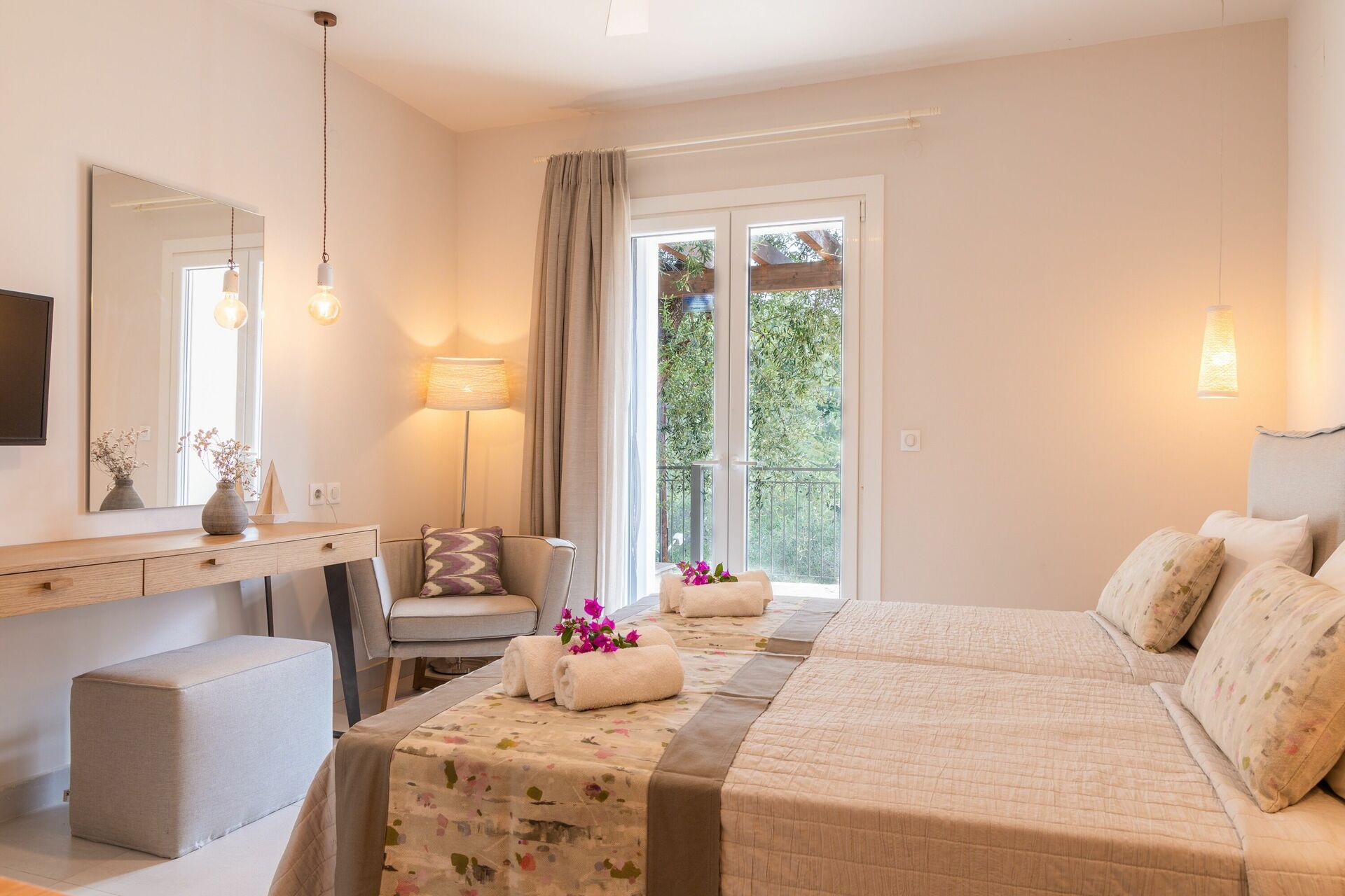 הוילה שהושלמה בשנת 2018, יושבת על הגבעה שמעל מפרץ אגני הנודע, שם יש חוף ומסעדות מצוינות להתענג על אוכל יווני מסורתי.