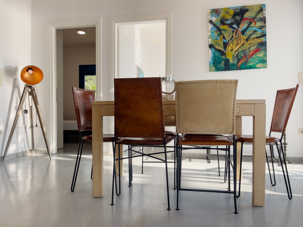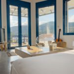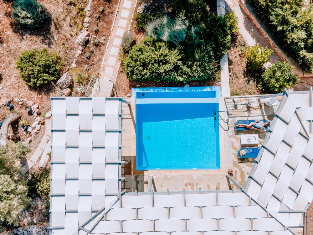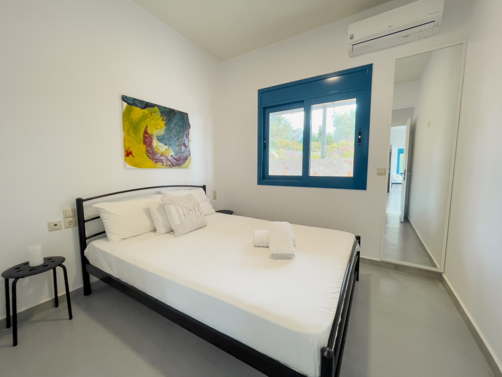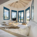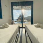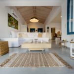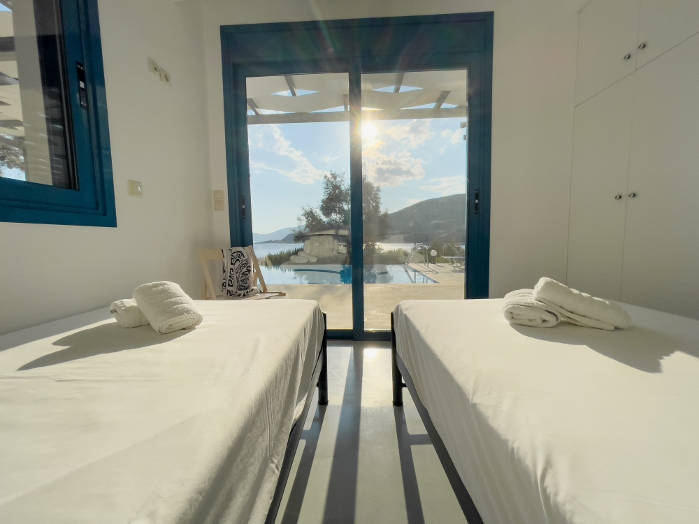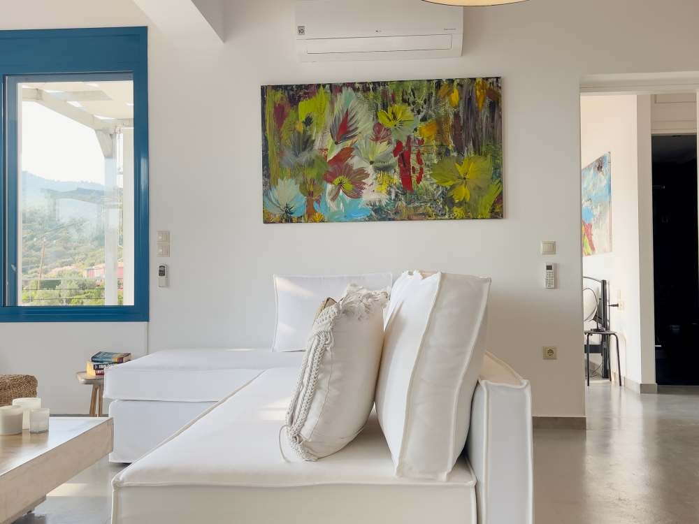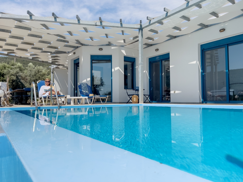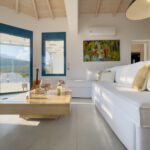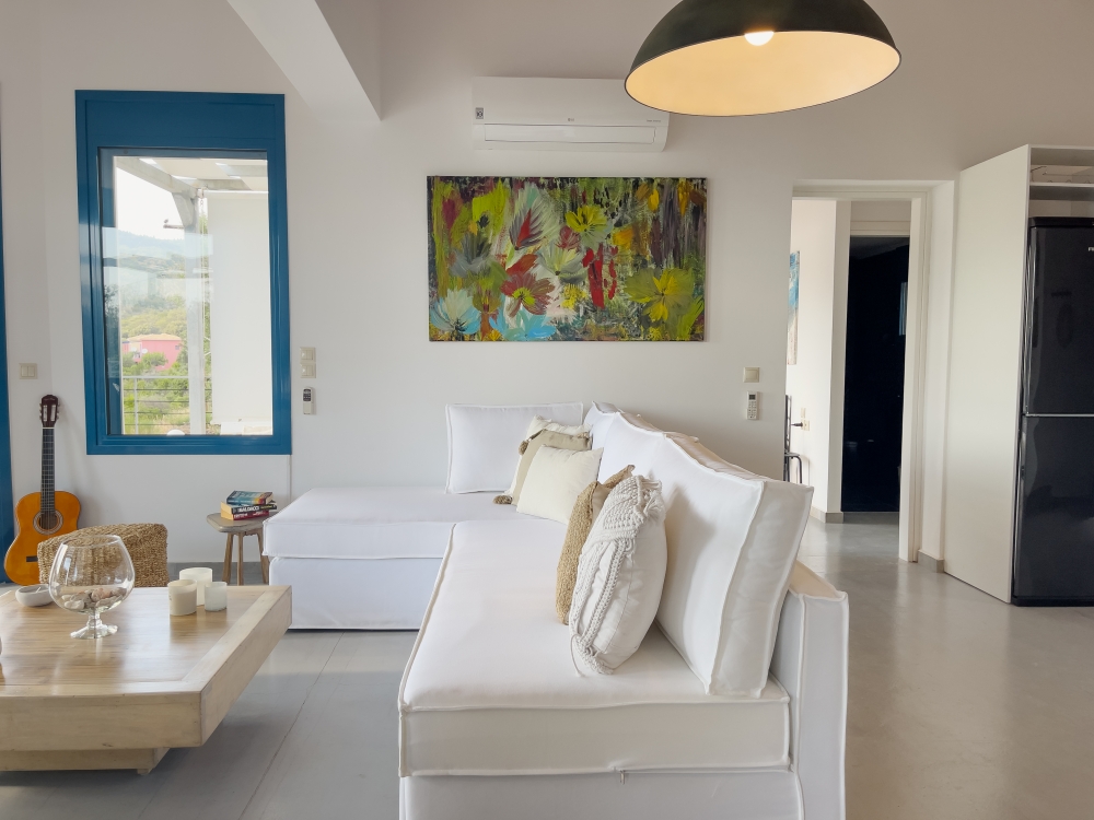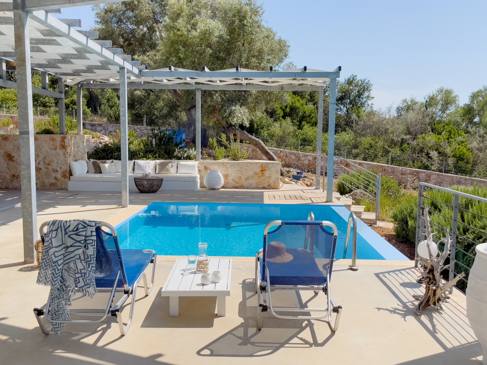 The villa was constructed to blend with its natural surroundings, set in a large private property, covered by olive trees and stunning sea views, allowing you to enjoy an ultimate Greek island vacation experience with full privacy and without leaving the Villa.