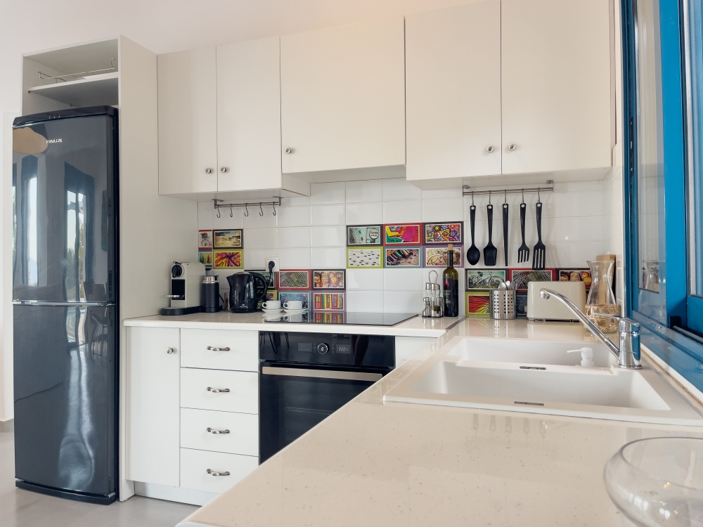 A few minutes walk from the villa you can find a secret and secluded beautiful beach and the stunning Ammouso beach with its crystal clear waters, beach bar facilities, sunbeds and tavern.