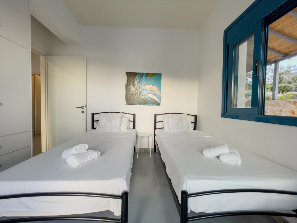 Second room: with 2 single beds, closet, sea view and exit to the terrace and pool.